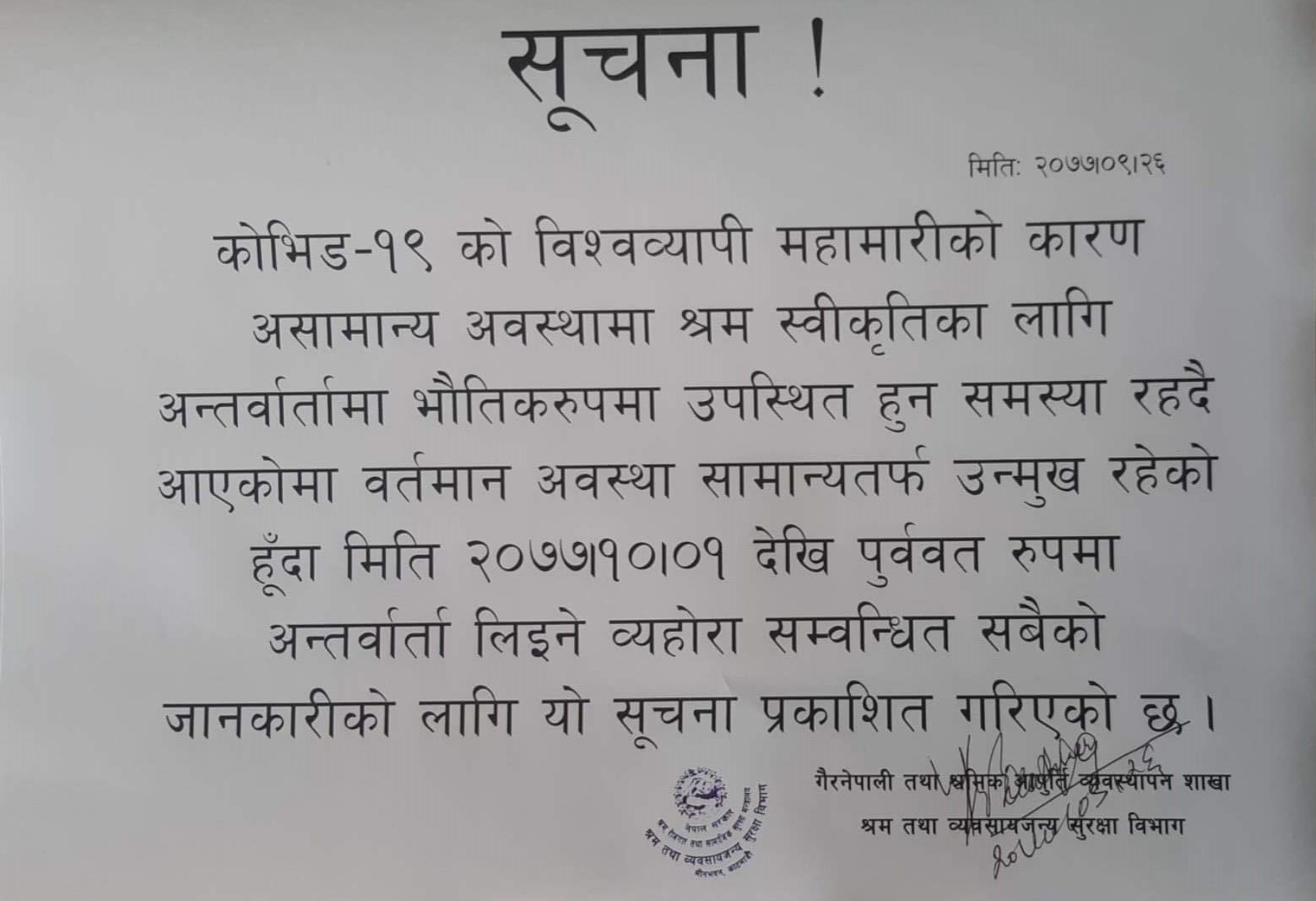 गैर नेपाली नागरिकहरुको श्रम स्विकृतिकाे लागि अन्तरवार्तामा उपस्थित हुने सम्वन्धी सूचना ।